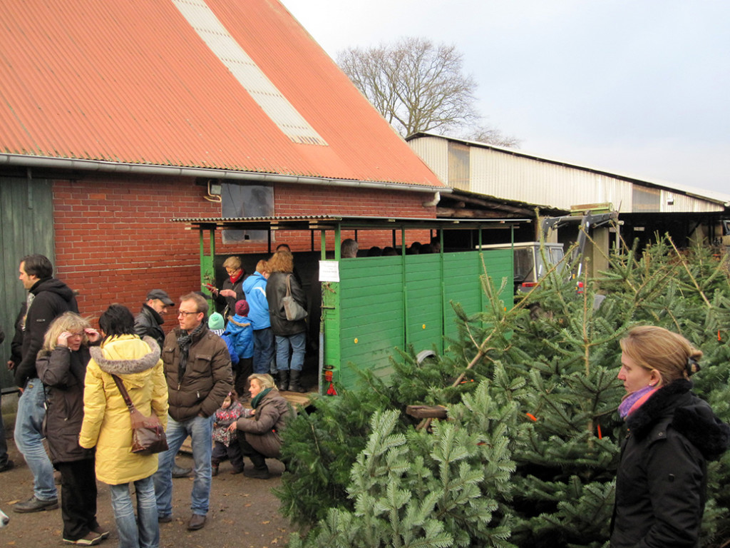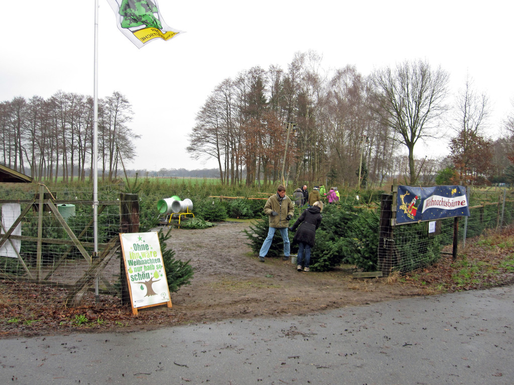 - frisch geschlagene Bäume vom Hofstand oder zum Selberschlagen in den Kulturen (bitte beachten, gegen Saisonende geht der Abverkauf der Bäume vom Hofstand dem Selberschlagen vor): Verkaufsbeginn (abweichend von der PDF Datei unten) für Endverbraucher ab Freitag, 28. November 2025 täglich ab ca. 9.00 bis 18.00 Uhr, am 24.12. von 9.00 – 12.00 Uhr. Die Öffnungszeiten gelten auch für das Selberschlagen. Sägen sind vorhanden. Bitte machen Sie sich Ende Nov./ Anf. Dez. deutlich bemerkbar (Autohupen… oder begeben sich zur Lärmquelle (Motorsäge/Traktor), da wir dann evt. noch bei der Weihnachtsbaumernte sind.