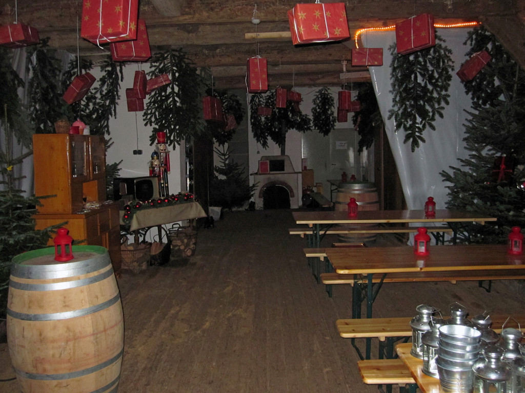 - Event „Weihnachtsbaumschlagen“ für Firmen, Vereine, Gruppen: Für Buchungen bitte frühzeitig anfragen, verschiedene Termine ab 1. Adventswochenende noch frei. Weitere Infos auf unserem Flugblatt „Event Weihnachtsbaumschlagen“ (PDF). Die Bauerndiele als größter Raum wurde saniert und umgestaltet und ist jetzt deutlich heller und größer und bietet Platz für bis zu ca. 150 Personen gleichzeitig, bei Veranstaltungsdauer von ca. 3 bis 4 Std. können also auch ca. 400 – 500 Personen insgesamt versorgt werden.